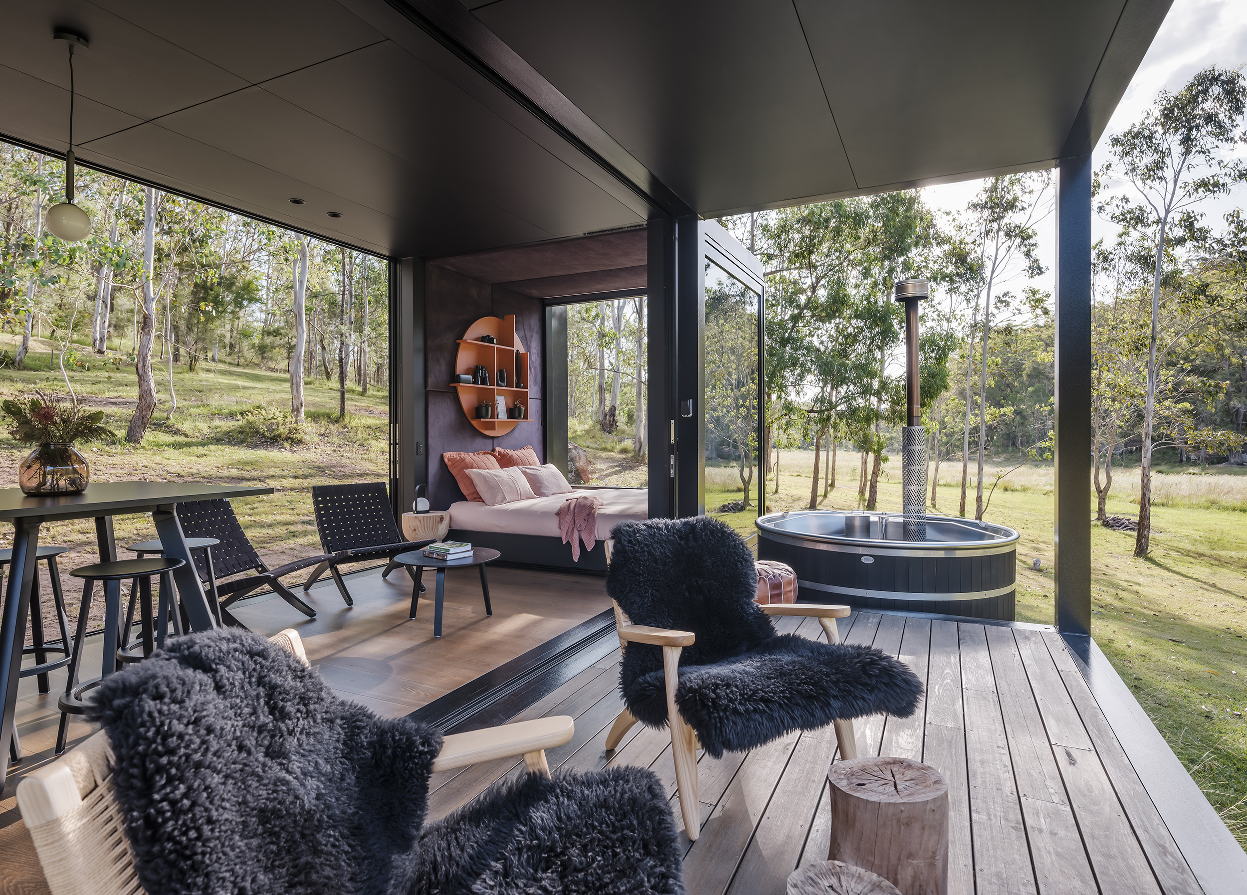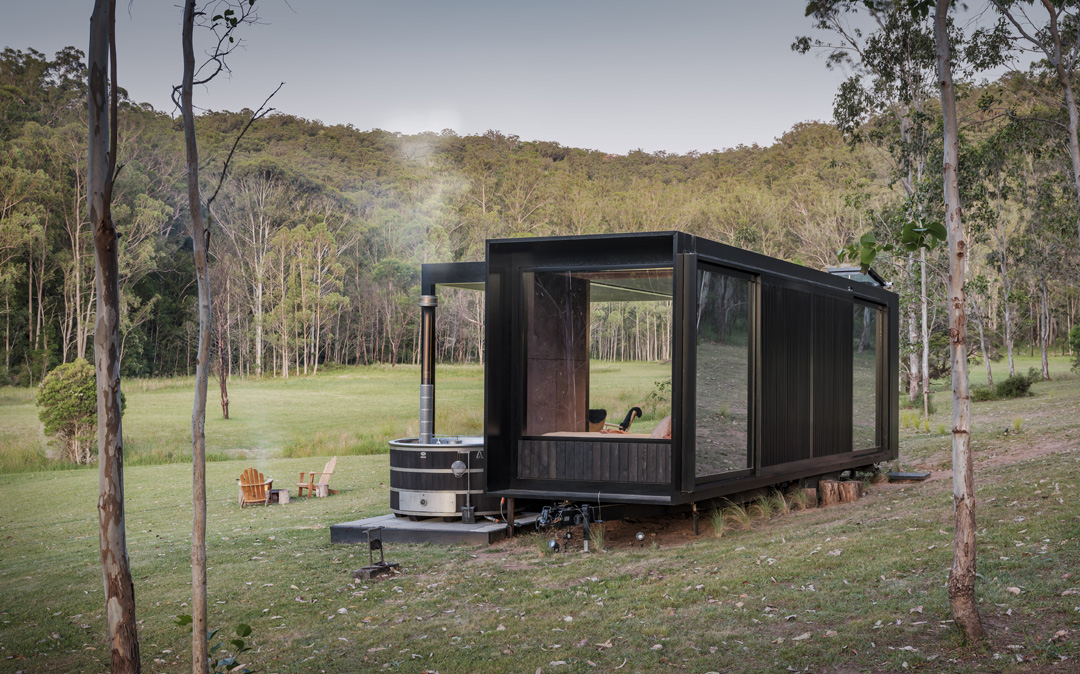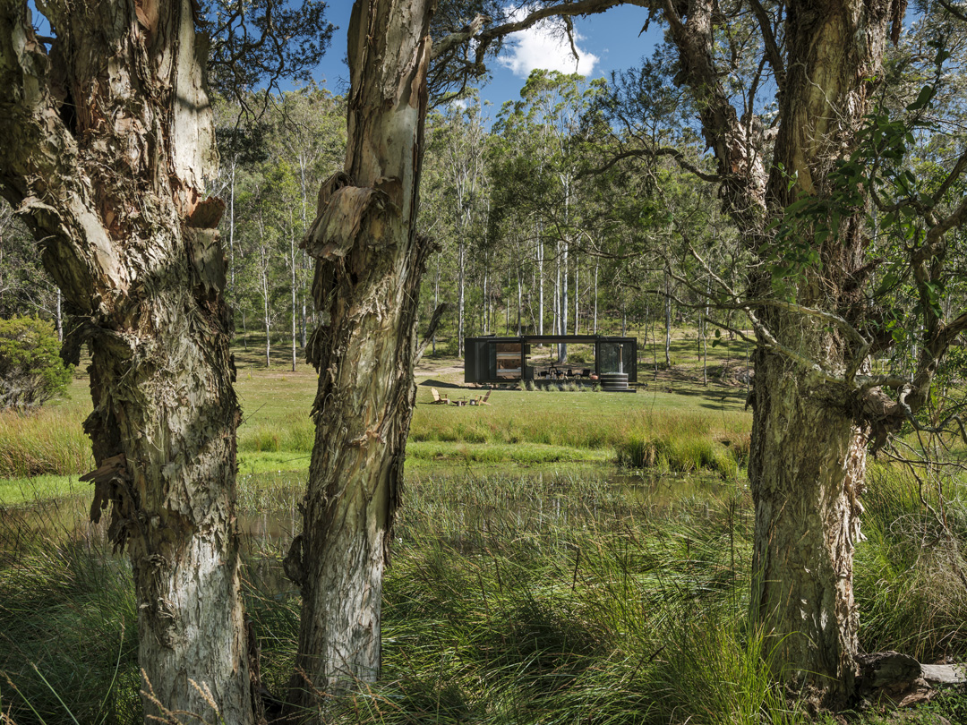 An off-grid cabin, tucked away in the Hunter Valley, Huch was designed with specific architectural intent to address the brief of sustainability and style while providing a luxury escape to the country.
