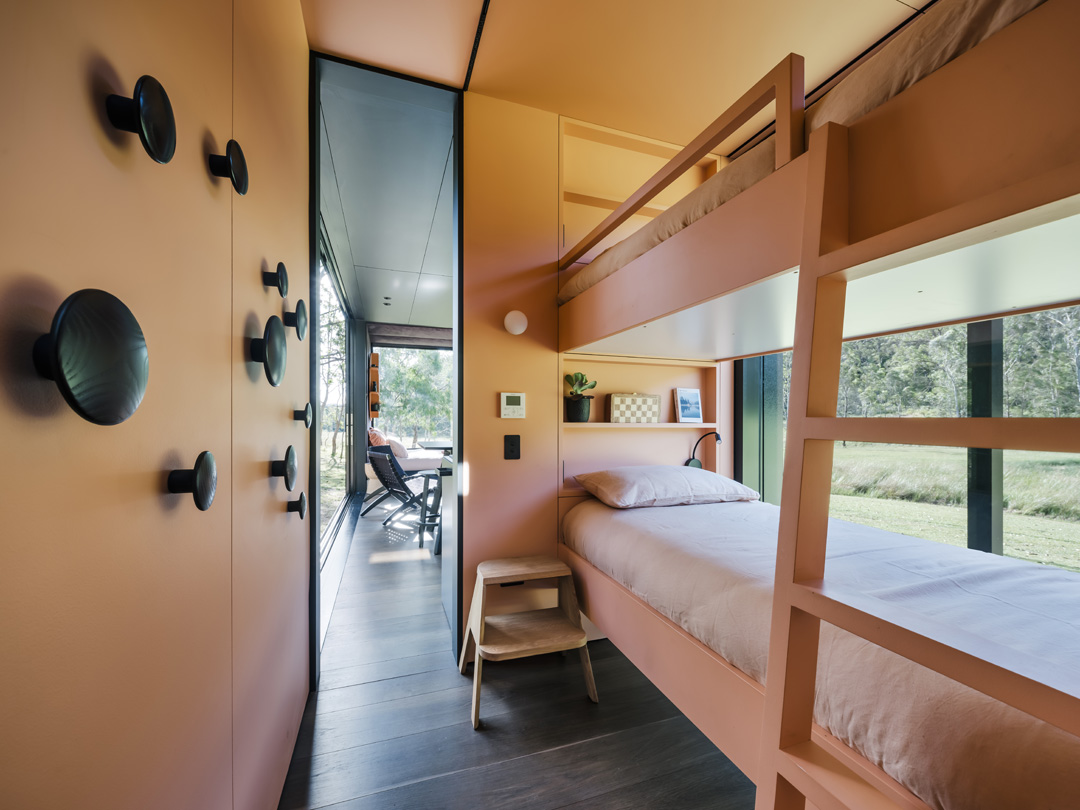 The original intent was for a lightweight construction, dismantle, tow to site and re-construction at the final destination. But the client made the call, for cost benefits, to transport the cabin on the back of a truck, which left a little more flexibility in weight restrictions. We were then able to completely fit off and commission the cabin before it was sent on its 6-hour journey to Wollombi in the Hunter Valley.